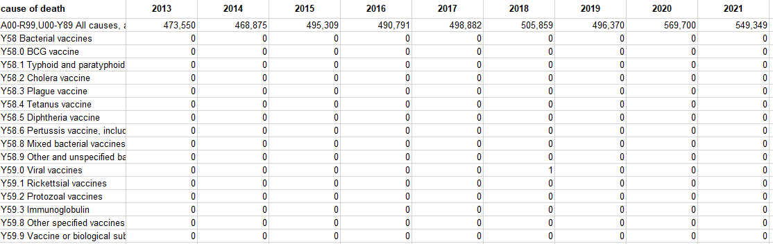 Ωστόσο, ακόμη και αν αυτοί οι πίνακες αντιπροσωπεύουν τους πραγματικούς αριθμούς θανάτων, μια αύξηση 4800%, ανεξάρτητα από τα νούμερα, θα πρέπει να δικαιολογεί μια άμεση διερεύνησή. Ειδικά όταν τόσοι πολλοί από αυτούς τους θανάτους ανήκουν σε άτομα νεότερης/μεσαίας ηλικίας που πιθανότατα δεν κινδύνευαν να πεθάνουν από τον Covid.