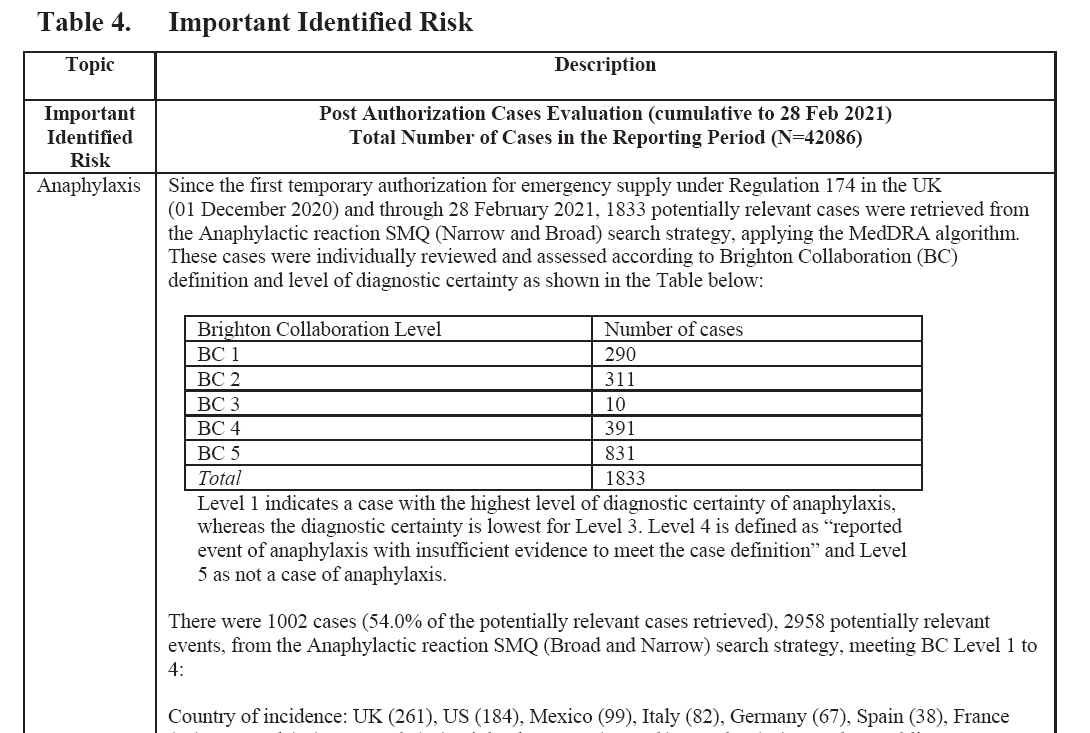 Όταν χορηγήθηκαν τα εμβόλια, οι άνθρωποι ανακάλυψαν γρήγορα ένα υψηλό ποσοστό αναφυλαξίας. Είναι ακριβώς εκεί στο έγγραφο 5.3.6 στη σελίδα 9: