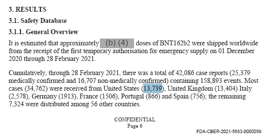 Είναι ανησυχητικό το γεγονός ότι η Pfizer αποκρύπτει πληροφορίες που δεν είναι ιδιοκτησιακές και θα ήταν πολύ χρήσιμες για την αξιολόγηση των δεδομένων, όπως ο αριθμός των δόσεων που χορηγούνται για το έγγραφο: ΑΝΕΠΙΘΥΜΗΤΑ ΣΥΜΒΑΝΤΑ ΕΙΔΙΚΟΥ ΕΝΔΙΑΦΕΡΟΝΤΟΣ" (AESI) (δηλ. το έγγραφο 5.3.6).